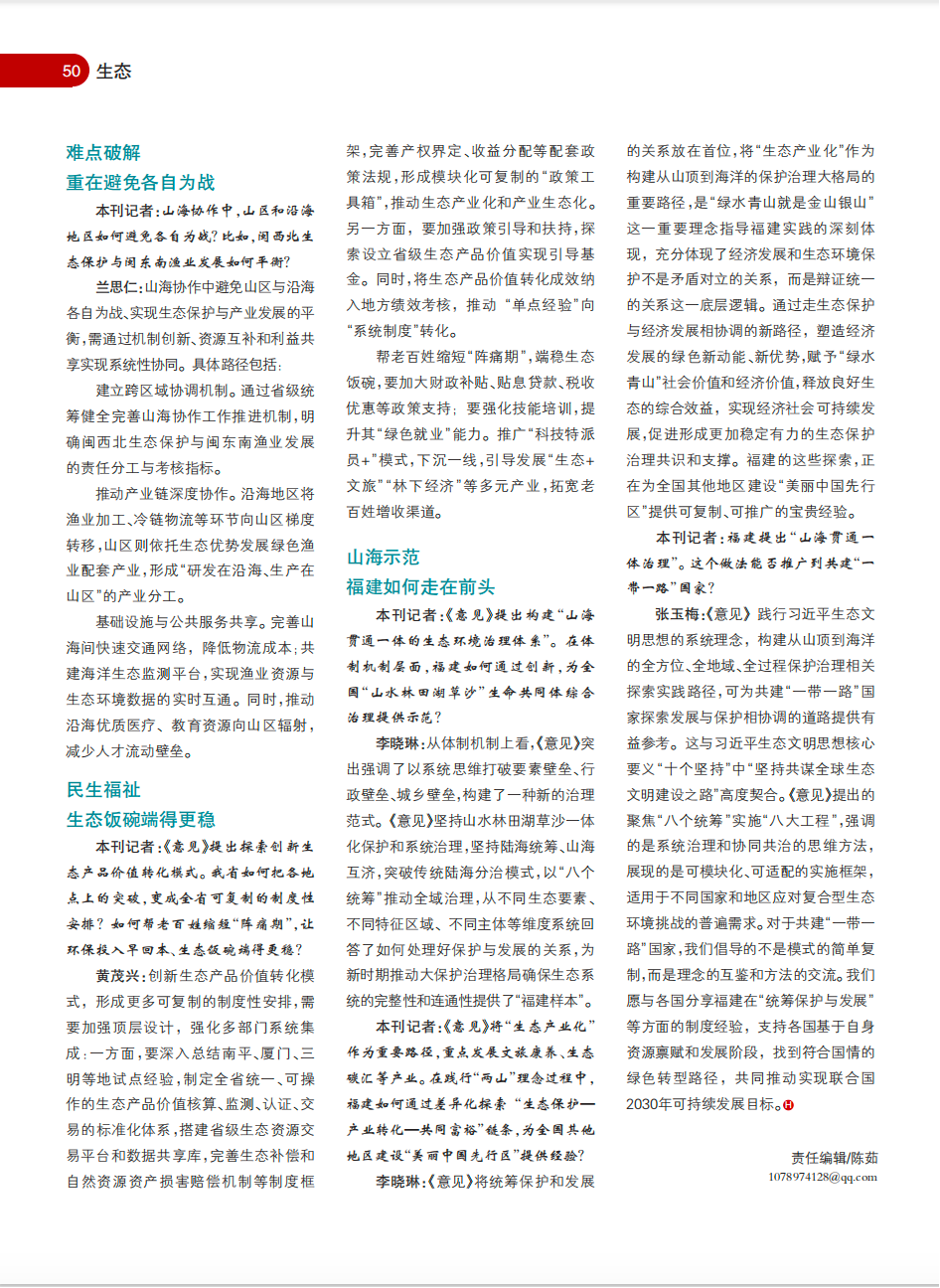 ——专访国家部委专家、福建省生态环境厅领导、福建知名学者,解读我省生态重磅政策