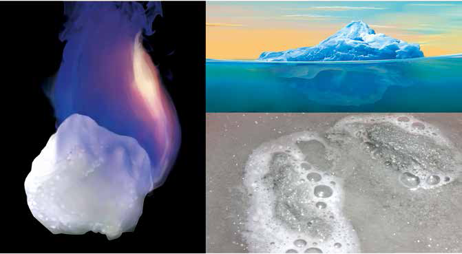 来龙去脉。实际上,可燃冰是甲烷和水在高压、低温条件下结晶形成的固态混合物。有关研究表明,受形成条件的限制,一类可燃冰存在于具有高压条件的海底松散沉积泥土中,另一类则存在于高纬度大陆的冻土带内。海底可燃冰矿藏要经过数百万年才能形成。