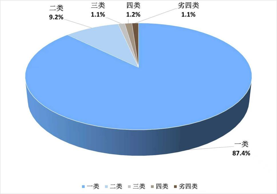 2025年春夏季,全省近岸海域水质状况如下:按照面积法评价,国控点位优良(一、二类)水质比例96.6%,各类水质比例如下:一类占87.4%,二类占9.2%,三类占1.1%,四类占1.2%,劣四类占1.1%;国省控点位优良(一、二类)水质比例为96.3%。按照点位法评价,国控点位优良(一、二类)水质比例82.4%,国省控点位优良(一、二类)水质比例为83.0%。