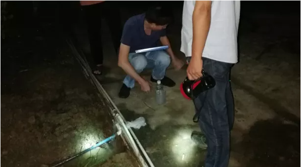 监测人员采集三通管不明来水