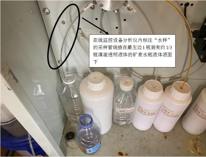 COD自动监测设备进样管插入矿泉水瓶内