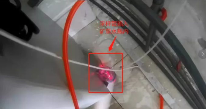 采样管插入装有不明液体的矿泉水瓶