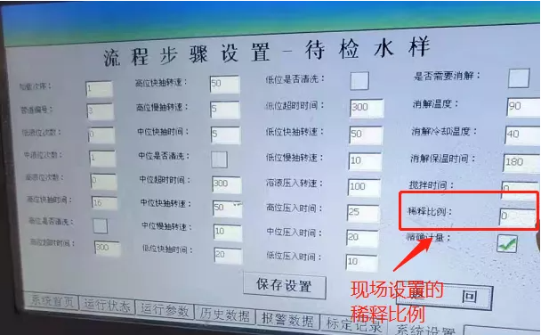 检查时现场设备设置的稀释比例