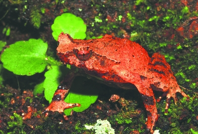凯文拍摄的蛙类新种——雨神角蟾。