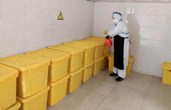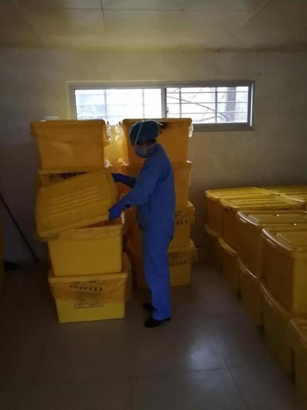 南平市顺昌县总医院医务工作人员在医废暂存间工作。蒋锐剑供图
