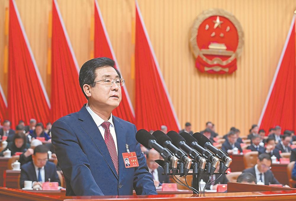 省长赵龙代表省人民政府向大会作政府工作报告。报告分为三个部分:一、牢记殷殷嘱托,在接续奋斗中新福建建设取得新成效;二、牢记历史使命,在中国式现代化建设中奋勇争先;三、牢记人民至上,在建设服务型政府中践行初心使命。