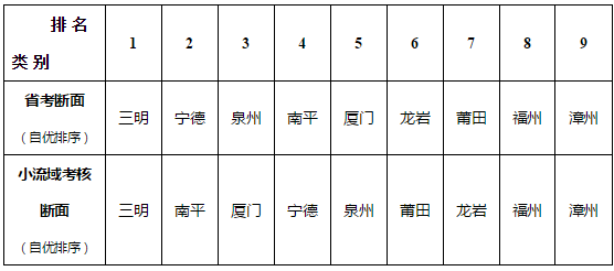 2020年1-12月,各设区市地表水水质按省考断面、小流域考核断面分别评价,水质排名情况如下(详见表1)。