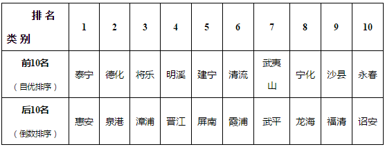 2020年1-12月福建省设区市地表水水质排名情况(表1)