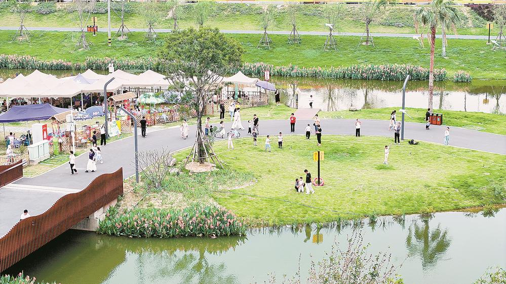 周末,市民来到漳州市龙江岁月公园游玩。(资料图片)