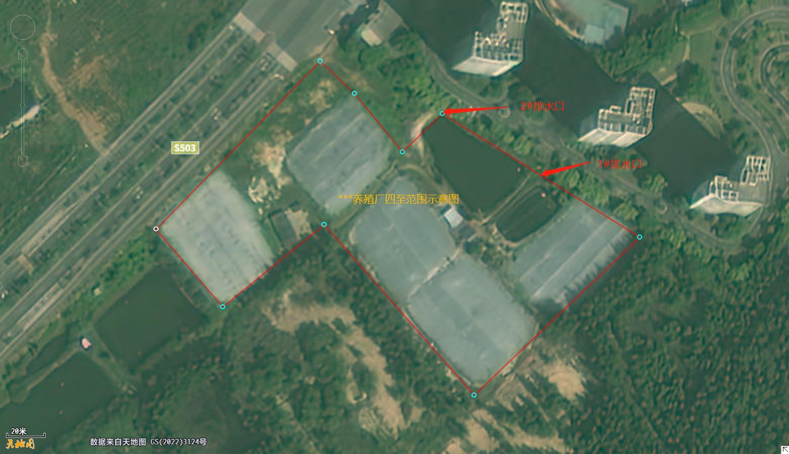 1. 入户(门口或路口)坐标: 东经 ;北纬 2.布局示意图:(可以采用卫星影像标识养殖场范围,用红线框出“四至”范围和排水口位置,若有多个排水口,要编号并标出。如附件3所示) |