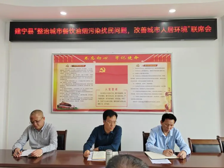 县级联席会上,分析了当前建宁县餐饮油烟治理工作现状、突出问题,讨论了有效解决方案,并做出了下步工作安排部署。